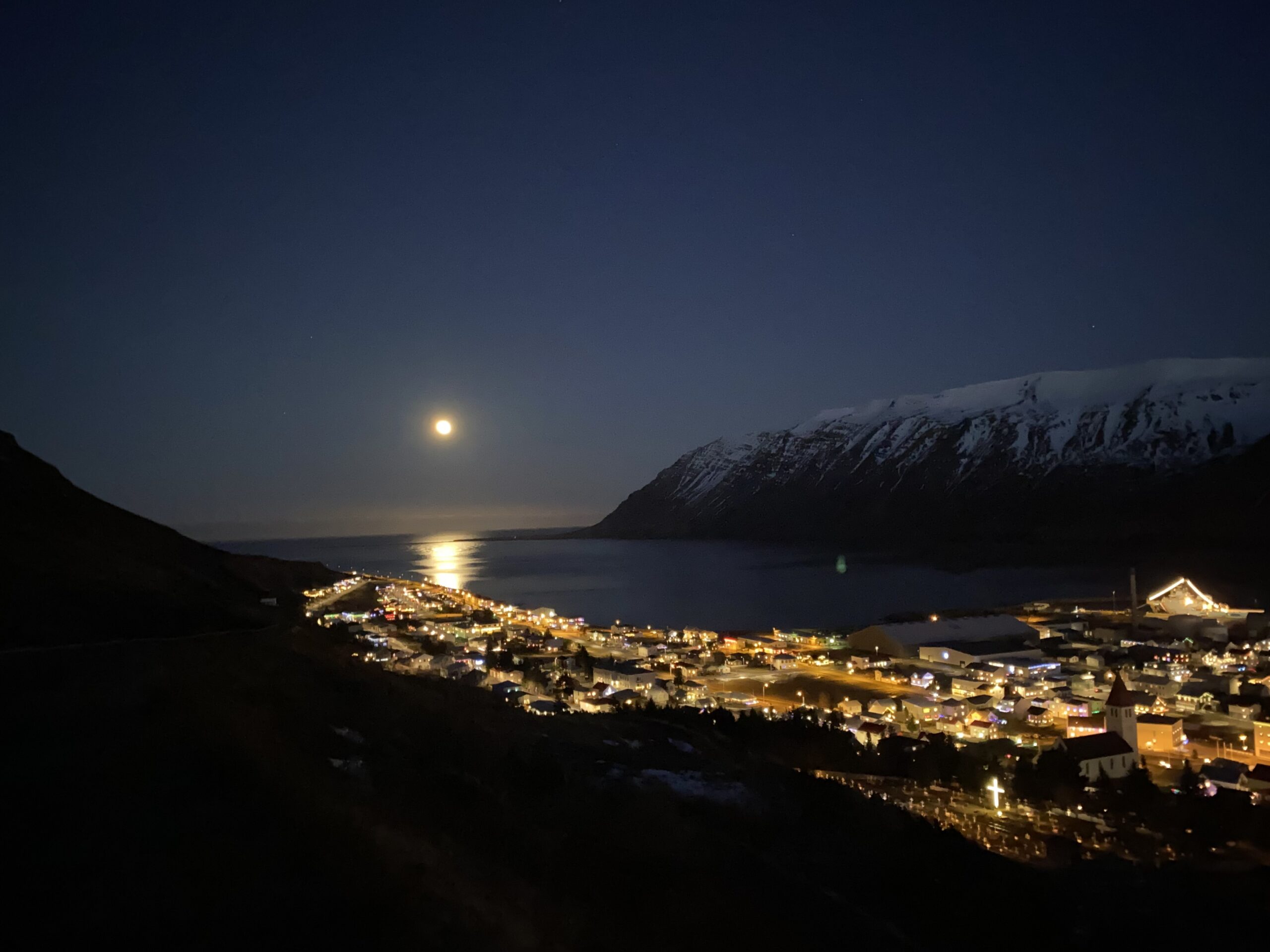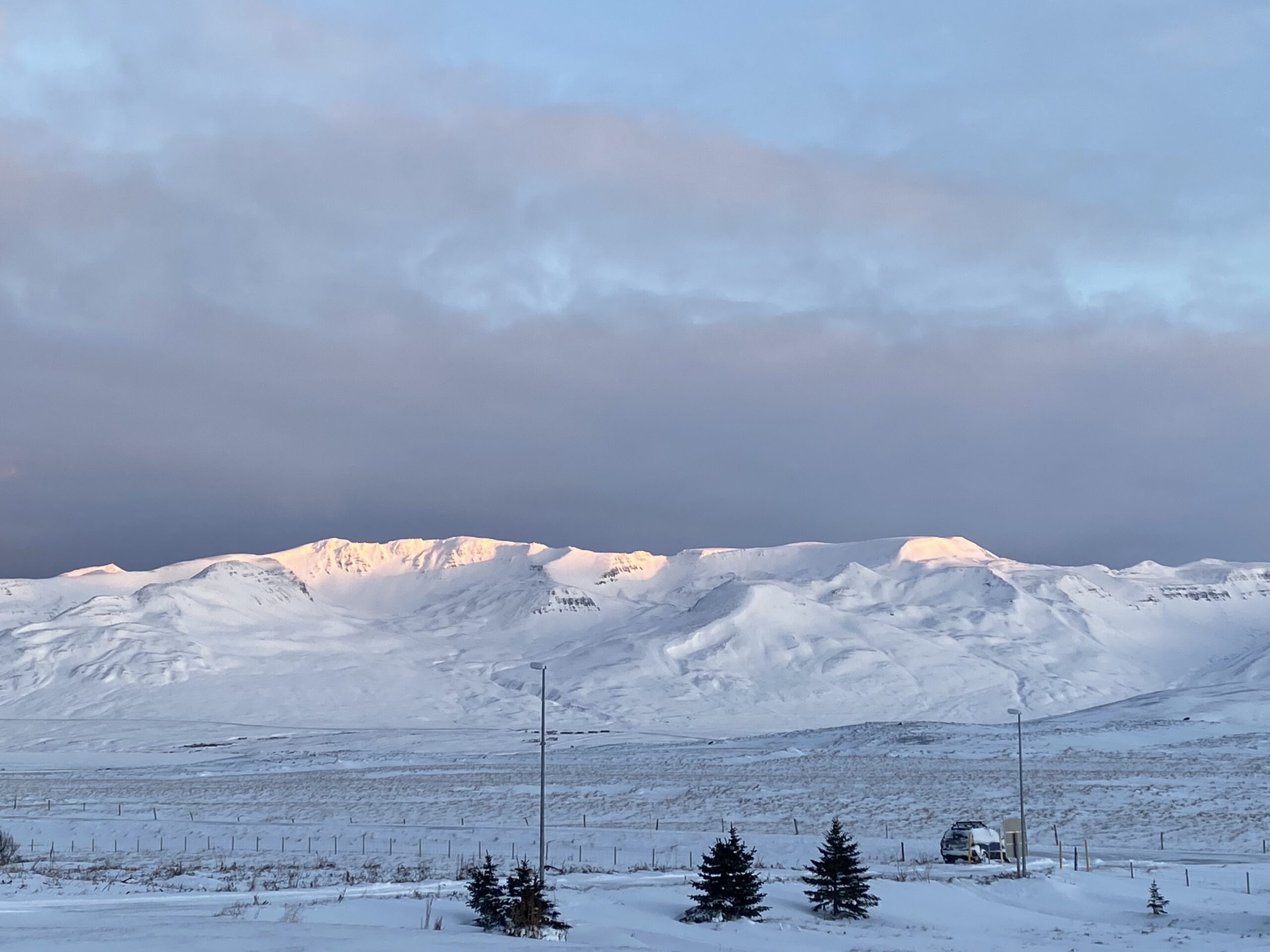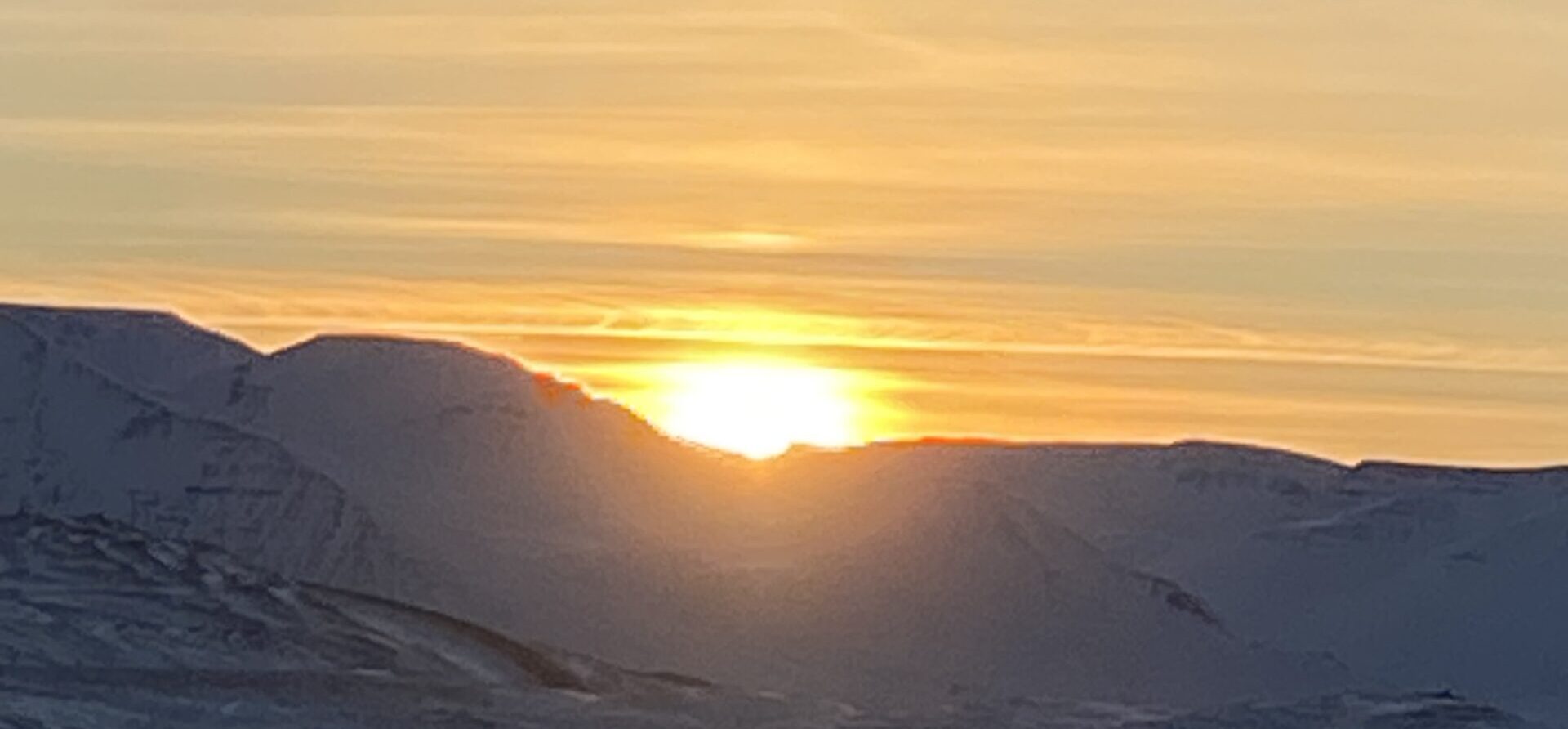 Here in the northernmost part of Tröllaskagi, the moon reigns supreme in the sky at New Year’s. The sun, shy and elusive during these months, only begins to show itself toward the end of January. This year, its return has already transformed the mountainscape. Soft golden rays illuminate the snow-covered peaks, casting long shadows and painting the terrain in hues of amber and rose. With each passing day as the sun rises higher in the sky, the light grows stronger, heralding the slow approach of spring.