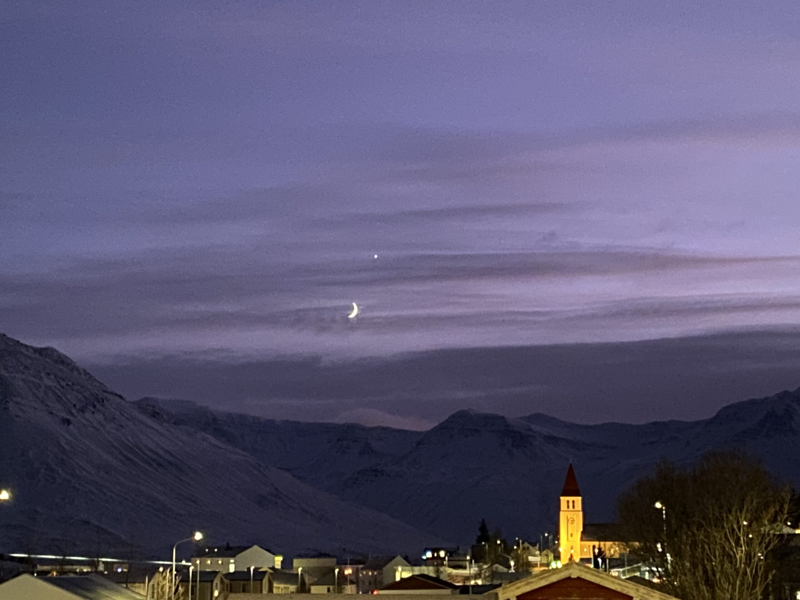 Though winter darkness lingers, stars twinkle on clear nights, and the moon sometimes feels so near it seems almost within reach. After this New Year’s, Venus stayed remarkably close to the Moon, shining so brightly in the western sky that it cast shadows upon the earth. Here, near the Arctic Ocean, the moon and night sky bring tidings at the year’s turn, and recently, these celestial messages have been especially beautiful.